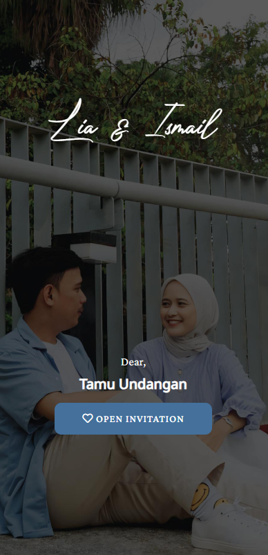 Lia & Ismail Dear, Acara akan dimulai dalam 00Hari 00Jam 00Menit 00Detik Simpan Tanggal Qs. Ar – Rum Ayat 21 “Dan di antara tanda-tanda (kebesaran)-Nya ialah Dia menciptakan pasanganpasangan untukmu dari jenismu sendiri, agar kamu cenderung dan merasa tenteram kepadanya, …